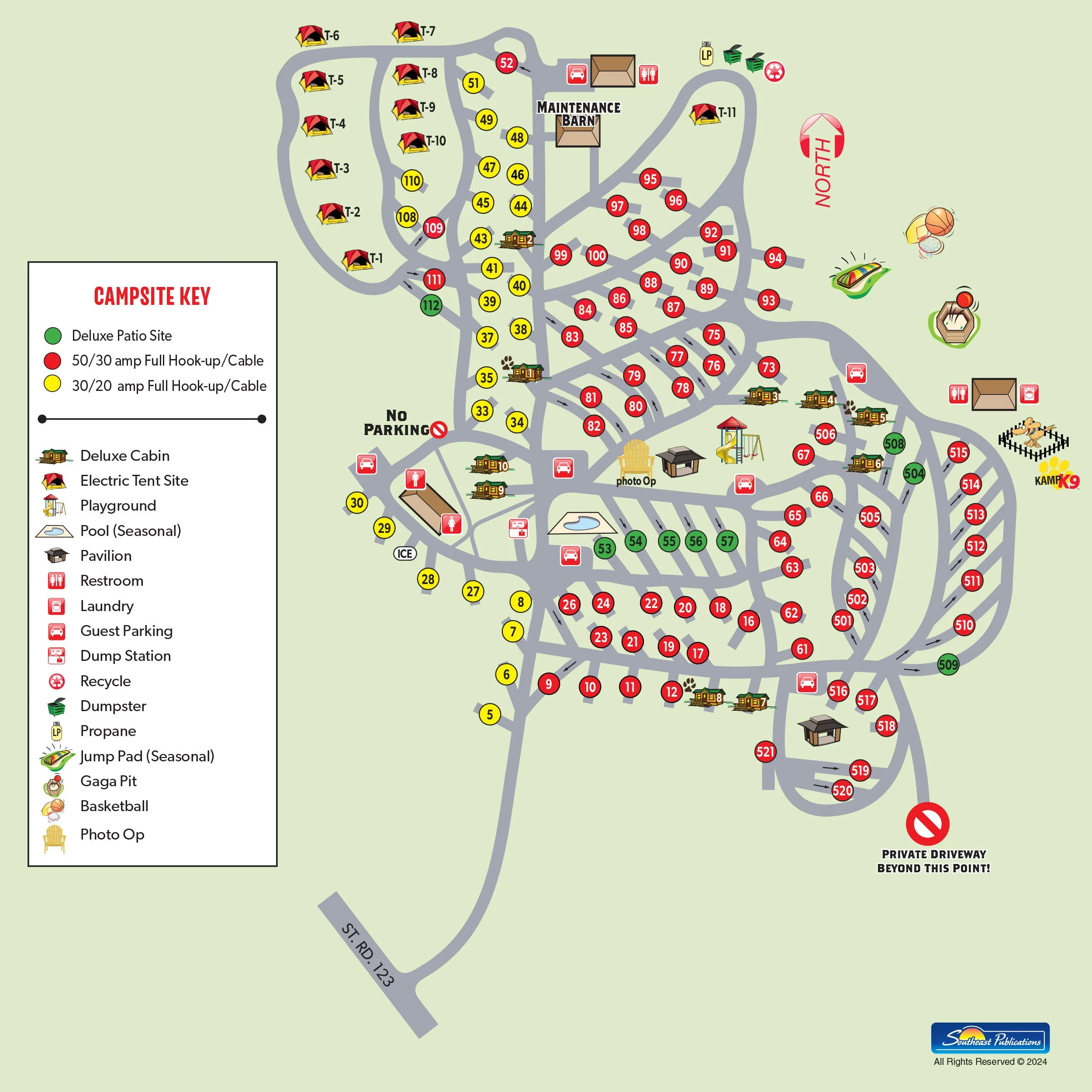 The map has changed slightly since we’ve camped there, but I believe we stayed in site 67. It was a great site for us because we were close the playground. The campground has since expanded and they’ve added some great new features, like the bounce pillow, more cabins, and even tents sites.