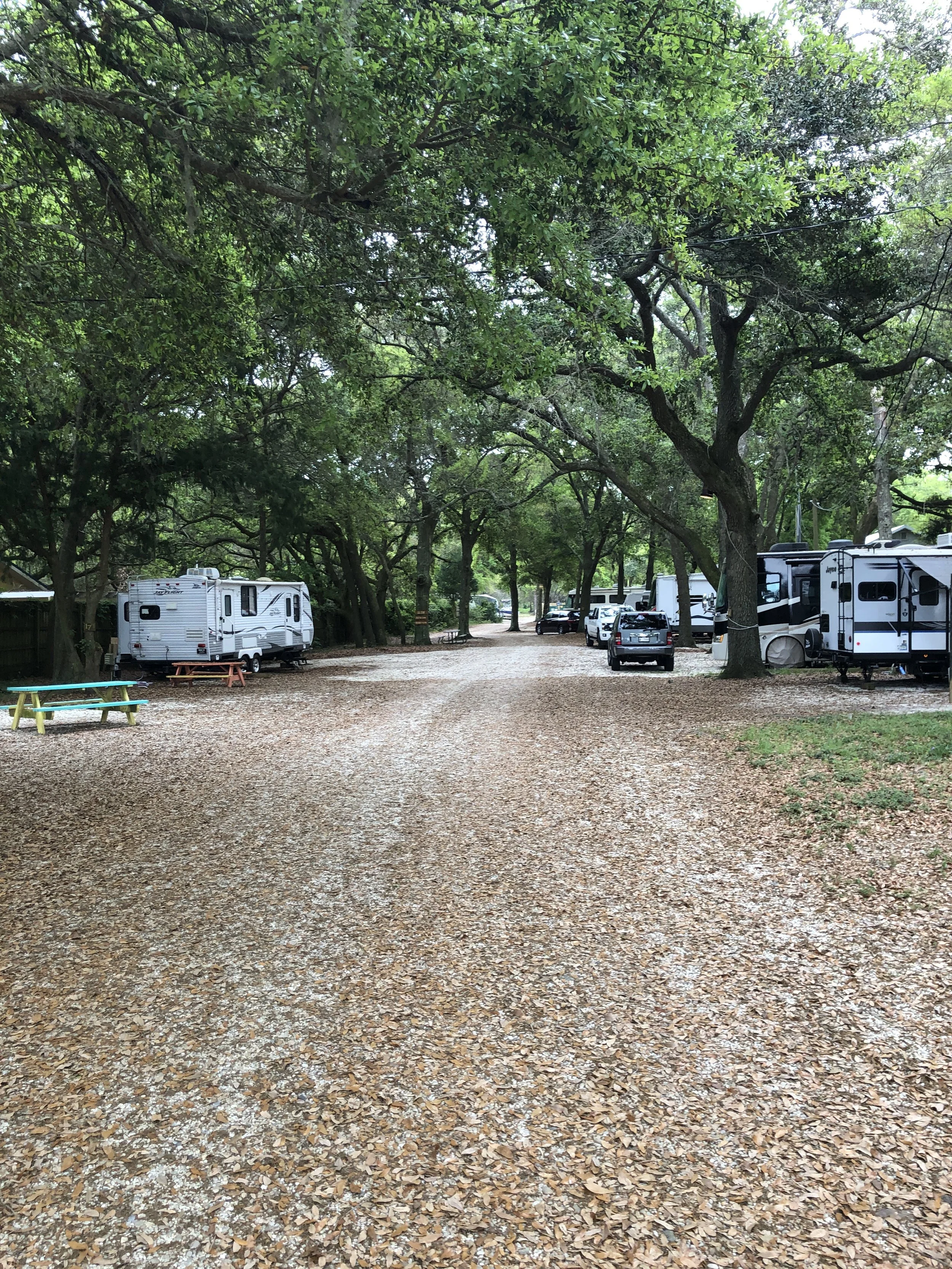 Privately owned, gravel sites and roads, free laundry. mostly shaded bay view or bay front sites, 10 min drive to public gulf-side beaches. However the Gulf beaches tend to be rough. We recommend a public beach near Fort Morgan on the bay side.